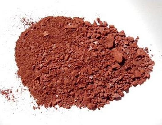 赤铁矿,三方晶系。晶体常呈薄片状、板状。一般以致密块状、肾状、葡萄状、豆状、鱼子状、土状等集合体最为常见。结晶者呈铁黑色或钢灰色;土状或粉末状者,呈鲜红色。但条痕都呈樱桃红色。结晶者呈金属光泽,土状者呈土状光泽。硬度5.5-6,但土状粉末状者硬度很小,比重5-5.3。在还原焰中烧后有磁性。