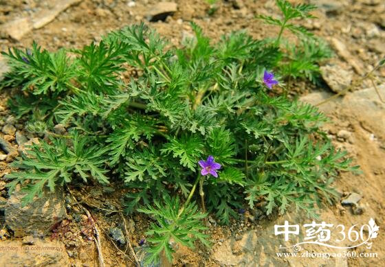 【药用部位】为槐牛儿苗科植物牻牛儿苗或老鹳草、尼泊尔老鹳草、西伯利亚老鹤草及野老鹳草、块根者鹳草等带有果实的全草。