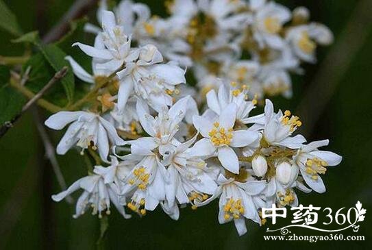 溲疏 落叶灌木,高达3m。小枝中空,赤褐色,幼时有星状毛,老时则光滑或呈薄片状剥落,芽具多数覆瓦状鳞片,无毛。叶对生;有短柄;叶片卵形至卵状披针形,长5-12cm,宽2-4cm,先端尖以至钝渐尖,基部稍圆,边缘具小齿;上面疏被辐射线5条的星状毛,下面被少而密的6-12条辐射线的星状毛,但表面仍露出。圆锥花序直立,长3-10cm,具星状毛;萼杯状,有5齿,齿三角形,早落;花瓣5,白色或外面有粉红色斑点,长圆形或长圆状卵形,长约8mm,外面有星状毛;雄蕊10,外轮雄蕊较花瓣稍短,花丝顶端具2齿;子房下位,花柱3,离生。蒴果近球形,先端扁平,径4-5mm,有多数细小种子。花期5-6月,果期7-10月。