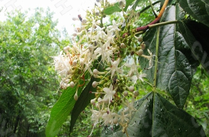 【原形态】大青,灌木或小乔木,高1-10m。幼枝黄褐色,被短柔毛,髓坚实,白色。单叶对生;叶柄长1.5-8cm;叶片纸质,长圆状披针形、长圆形、卵状椭圆形或椭圆形,长6-20cm,宽3-9cm,先端渐尖或急尖,基部近圆形或宽楔形,全缘,两面无毛或沿叶脉疏生短柔毛,背面常有腺点;侧脉6-10对。伞房状聚伞花序顶生或腋生,长10-16cm,宽20-25cm,具线形苞片,长3-7mm;花萼杯状,先端5裂,裂片三角状卵形,粉红色,外面被黄褐色短绒毛和不明显的腺点;花冠白色,花冠管细长,长约1cm,先端5裂,裂片卵形,长约5mm;雄蕊4,与花柱同伸出花冠外。果实球形或倒卵形,直径5-10mm,绿色,成熟时蓝紫色,宿萼红色;花、果期6月至翌年2月。