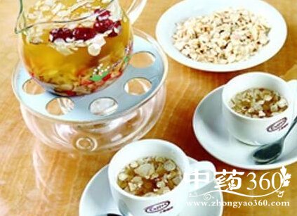 效果:人参补元气;菊花清虚火、益肝明目;麦门冬能止渴、强心、保气管、润肺、抗疲劳;此茶饮有养肝、抗疲劳、补元气的作用。
