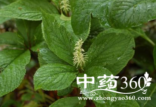 【植物形态】多年生草本,高可达50厘米。主根粗短,须根发达,多而粗,长10~14厘米,直径约3毫米,近先端分枝。茎直立,光滑无毛,具4~5个节。单叶轮生于茎端,通常4枚,叶片倒广卵形或长卵圆形,长10~17厘米,宽约8厘米,先端渐尖,钝头,边缘具圆齿,齿端芒尖,基部渐狭,呈阔楔形,两面光滑,背面叶脉被有白色柔毛;无柄或近无柄。穗状花序通常2枝,直出枝顶,长12厘米,花两性及单性,小型,白色,花径2~3毫米;雄花无花被,雄蕊3,倒卵圆形,合生成一片状体,3裂。核果卵球形或球形,先端具尖状突起,外果皮肉质,果长约3.5毫米,宽约2毫米。花期4月。