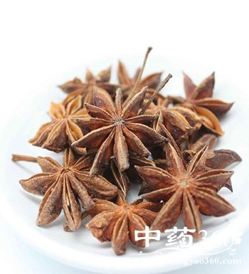 3、八角性温,味甘辛,具强烈香味,有驱虫、温中理气、健胃止呕、祛寒、兴奋神经等功效。可用于治疗恶心呕吐、胃脘寒痛、腹中冷痛、腹胀以及肾阳虚等病症。茴香油具有刺激胃肠血管、增强血液循环的作用。
