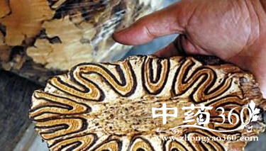 1.性状鉴别 茎圆柱形或扁圆柱形,直径6-12cm。表面棕褐色或黑褐色,常附有密集的不定根断痕和大型叶柄痕,每一叶柄痕近圆形或椭圆形,直径约4cm,下方有凹陷,边缘有多数排列紧密的叶迹维管束,中间亦有叶迹维管束散在。质坚硬,断面常中空,周围的维管束排成折叠状,形成隆起的脊和纵沟。气微,味苦、涩。