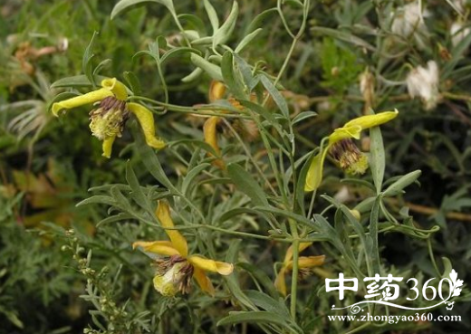 【原形态】变色马兜铃 木质藤本。块根圆锥形,常数个相连。嫩枝纤细,具纵棱。被短柔毛。叶互生;叶柄长1-2cm,粗壮,常弯扭,稍被毛;叶片长椭圆形或椭圆状披针形,长14-25cm,宽4-6.5cm,先端短尖至渐尖,基部呈狭耳形,两侧裂片常稍内弯或下垂,边全缘,下面叶脉上疏被长柔毛,后渐脱落,基出脉3条。花单生或2花聚生,稀排成总状花序,生于叶腋;花梗密被褐色长柔毛;小苞片钻形,密被褐色长柔毛;花被管中部急剧弯曲,从弯曲处至檐部较下部短而彼此互相贴生,黄绿色,有纵脉纹,外面密被丝质长柔毛,内面无毛;檐部盘状近圆形,花蕾时黄色,开花后紫红色,有网状脉纹,外面密被棕色丝质长柔毛,边缘浅3裂;喉部半圆形,稍具领状突起;花药成对贴生于合蕊柱近基部;子房圆柱形,密破棕色长柔毛;合蕊柱裂片先端钝,边缘向下延伸,并有乳头状突起,蒴果椭圆状,长5-8cm,6棱,成熟时暗褐色,自先端向下开裂。种子卵形,背面平凸状。花期4-6月,果期8-10月。
