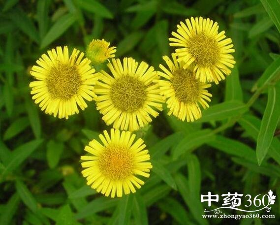 2.金沸草为旋覆花的地上部分。性味功效与旋覆花类似,其性发散,外感咳嗽痰多者常用。煎服,5~10g。其鲜叶捣汁外敷可治疗疮痈肿毒。