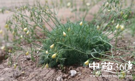 罂粟科角茴香属植物角茴香Hypecoum erectum L.[Chiazospermum erectum (L.)Bernh.],以全草入药。夏秋采集,晒干。名称角茴香(Jiǎo Huí Xiānɡ)