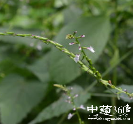 多年生草本,高30~80厘米。茎四棱形,淡紫色,具倒生短毛及紫条纹,节部膨大。单叶对生;卵状长椭圆形,长5~10厘米,宽4~7厘米,先端短尖或渐尖,基部楔形,边缘具钝圆锯齿,两面脉上有短毛;叶柄长0.5~3厘米。穗状花序顶生或腋生,长10~20厘米;苞片及小苞片钻状;花疏生,有短柄;萼筒状,具5棱,长3~6毫米,上唇3齿呈芒状钩,下唇2齿较短,无芒;花冠筒状,粉红色或白色,长约5毫米,裂为唇形,上唇2浅裂,下唇3裂;雄蕊4,2强,着生于花冠筒部;子房上位,1室,花柱顶生,柱头2裂。瘦果包于宿萼内,长8~10毫米。花期6~8月。果期9~10月。