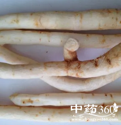 性状鉴别 根呈圆柱形,长7-20cm,直径0.5-1.2cm,多不分枝。表面淡黄棕色或灰棕色。质稍硬,断面粉性,形成层环明显,并可见淡黄色小油点。气微味淡。