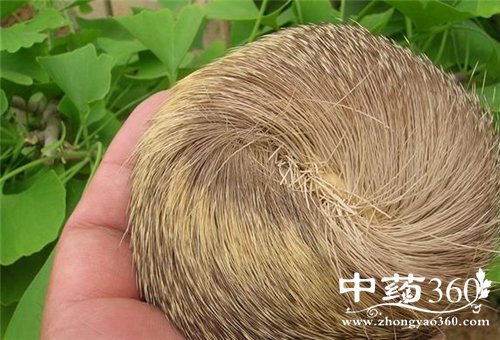 毛壳麝香。呈囊状球形或椭圆形,直径3~8厘米,厚2~4厘米。开口处的革质皮,颜色为棕褐色,密布灰白色或灰棕色的短毛,在这一面的中央有一个小孔,叫“囊孔”,直径3毫米左右。另一面棕褐色,剖开可见有一层褐色半透明的中膜,内膜呈棕色,习称“银皮”或“云皮”,内膜包裹的是颗粒状或粉末状的香仁。毛壳麝香以皮薄、仁满、有弹性、香气浓烈为佳品。可用手压捏不带毛的囊皮处,有柔软的感觉,没有顶手的硬刺物质。而且被压捏下陷后的皮囊,放手后可弹起,能恢复原状。