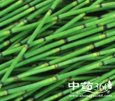 【药材】干燥全草,呈长管状,中空有节,不分枝。长30~60厘米,直径约5毫米,每节长3~6厘米。表面灰绿色或黄绿色,有多数纵枝,顺直排列,其上密生细刺,触之有粗糙感。节处有筒状深棕色的鳞叶。易自节处拔脱。质脆,易折断,断面中空,内有灰白色或浅绿色的薄瓤。气无,味甘,微苫涩。以茎粗长、色绿、质厚、不脱节者为佳。