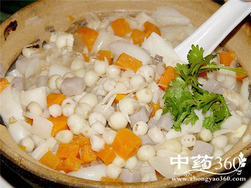 为滋养强壮性食物,和莲子有些相似,但芡实的收敛固精作用比莲子强,适用于慢性泄泻和小便频数,梦遗滑精,妇女带多腰酸等。