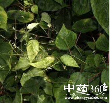 原形态又蕊薯蓣 缠绕草质藤本。根茎横生,竹节状,长短不一,直径约2cm,表面着生细长弯曲的须根,断面黄色。茎圆柱形,左旋,无毛或有时密被短毛。单叶互生;叶片三角状心形或卵状被针形,先端渐尖,基部心形、宽心形或有时近截形,边缘波状或近全缘,干后黑色,有时背面灰褐色有白色刺毛,沿叶脉较密。雄花序单生或2-3个簇生于叶腋;雄花无梗,在花序基部由2-3朵簇生,至顶部常单生;苞片卵状披针形,先端渐尖,小苞片卵形,顶端有时2浅裂;花被碟形,先端6裂,裂片新鲜时黄色,干后黑色,有时少数不变黑;雄蕊3枚,着生于花被管上,花丝较短。花药卵圆形,花开放后药隔变宽,常为花药的l-2倍,呈短叉状,退化雄蕊有时只存有花丝,与3个发育雄蕊互生。雌花序穗状;雌花的退化雄蕊呈花丝状;子房长圆柱形,柱头3裂。蒴果三棱形,先端稍宽,基部稍狭,表面深褐色,成熟后反曲下垂;种子2颗,着生于中轴中部,成熟时四周有薄膜翅。花期5-8月,果期货-10月。