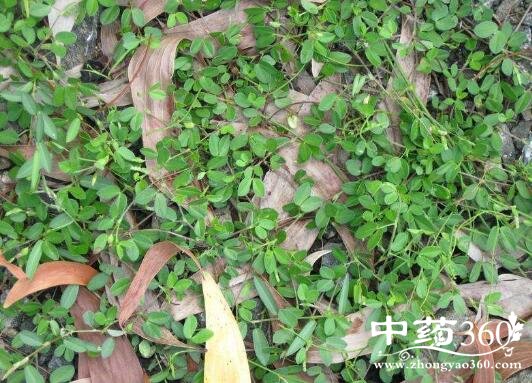 【别名】人字草、苦地枕、铺地锦(《岭南采药录》),乌蝇翼草(《中国主要植物图说·豆科》),丁贵草(广州部队《常用中草药手册》),铺地草、金线吊虾蟆(《广西中草药》),二叶人字草,苍蝇翼、沙甘里(《广东中草药》),一条根(《福建中草药》),乌龙草、红骨丁地青(《实用中草药》)。
