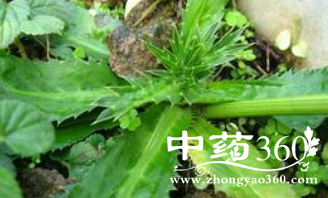 【药材性状】主根粗短,圆锥形,须根众多,灰褐色。基生叶8~12片,皱缩,展平后呈倒披针形或披针形,黄绿色,基部渐窄而成一扁平叶柄,边缘有硬骨质和刺状齿,羽状脉达锯齿尖端成硬刺。花茎自植株中央伸出,粗壮,中部以上分为2枝,并带有披针形的短叶,顶端尖锐,边缘3~5裂或不分裂,具疏而锐利的齿。有残留多数小花,呈头状花序聚生于花茎的分叉处,易脱落,残留萼片尖硬刺手。双悬果极细,呈卵形,表面具微细的棕色瘤状小点;全株香气较浓,味辛微苦。