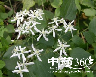【植物形态】藤本,植物干时变黑。根丛生于块状根茎上,细长圆柱形。茎具明显条纹,近无毛。叶对生,1回羽状复叶,小叶5,略带革质,狭卵形或三角状卵形,先端钝或渐尖,基部圆形或宽楔形,全缘,主脉3条,上面沿叶脉有细毛,下面无毛。圆锥花序顶生及腋生;总苞片窄线形,密生细白毛;萼片4,有时5,花瓣状,长圆状倒卵形,白色或绿白色,外被白色柔毛,内侧光滑无毛;雄蕊多数,不等长,花丝扁平;心皮多数,离生,子房及花柱上密生白毛。瘦果扁平,略生细短毛,花柱宿存,延长成白色羽毛状。花期5~6月,果期6~7月。