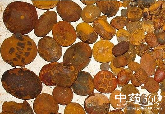 ⑧治乳岩(乳癌),横痃,瘰疬,痰核,流注,肺痈,小肠痈:犀黄三分,麝香一钱半,乳香、没药(各去油)各一两。各研极细末,黄米饭一两,捣烂为丸,忌火烘,晒干。陈酒送下三钱,患生上部,临卧服,下部空心服。(《外科全生集》犀黄丸)