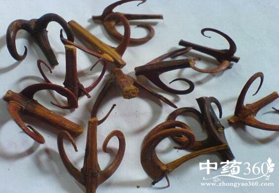 【药用部位】为茜草科植物钩藤或华钩藤及其同属多种植物的带钩枝条。