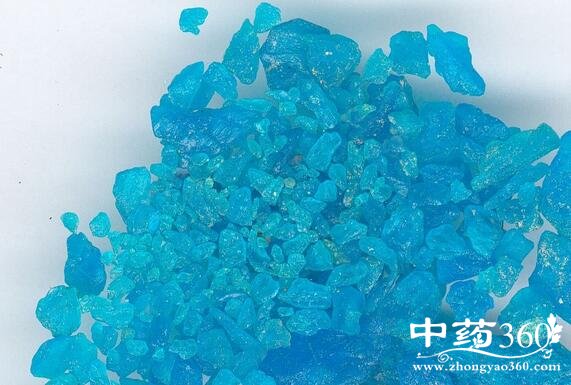 【药用部位】为硫酸盐类矿物胆矾的晶体,或为人工制成的含水硫酸铜。