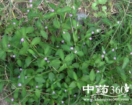 一年生匍匐草本,高15~30厘米。茎方形,或具4~6梭,绿色,表面被灰白色细柔毛,尤以棱上较密,节稍膨大。叶对生;卵形、长椭圆形或广披针形,全缘,先端尖,上面暗绿色,下面淡绿色,两面均有短柔毛;叶柄长5~10毫米。穗状花序顶生或腋生,长约2.5厘米;花小,萼片5,线状披针形或线形,边缘呈白色薄膜状,外围有苞片2枚,形状与萼同;花冠淡红色或带紫红色,较萼略长,上部唇形,上唇先瑞2浅裂,下唇先端3裂较深;雄蕊2枚着生于花筒部,花丝基部及着生处四周有细绒毛,药2室,1室不孕,并呈距状而下垂;雌蕊1,有毛,子房卵形,2室,花柱丝状,柱头头状,不明显。蒴果线形,先端短尖,基部惭狭,全体呈压扁状,淡棕色,表面上部具有白色短柔毛。种子卵圆形而微扁,径约1毫米,黑褐色,表面具有网状纹凸起。花期8~11月。