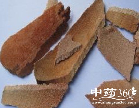 【性状】性状鉴别 本品呈不规则的片块状,宽3-6cm,厚0.5-2cm。栓皮表面灰褐色或红褐色,有纵皱纹及疣状皮孔。质坚硬。断面皮部棕褐色;木部红棕色,具细密纹理。纵断面有纵向纹理及不规则的纵裂隙,纤维性。气微,味淡微涩。以片块薄、大小均匀、色红棕者为佳。