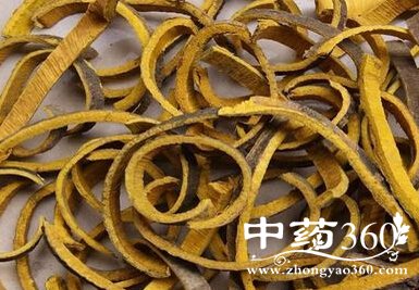 (2)川黄柏树皮呈浅槽状或板片状,略弯曲,长宽不一,厚1-6mm,外表面黄褐色或黄棕色,平坦,具纵沟纹,残存栓皮厚约0.2mm,灰褐色,无弹性,有唇形横生皮孔,内表面暗黄色或淡棕色,具细密的纵棱纹.体轻,质硬,断面皮层部位略呈颗粒状,韧皮部纤维状,呈裂片状分层,鲜黄色.气微,味极苦,嚼之有粘性.均以皮厚、断面色黄者为佳.