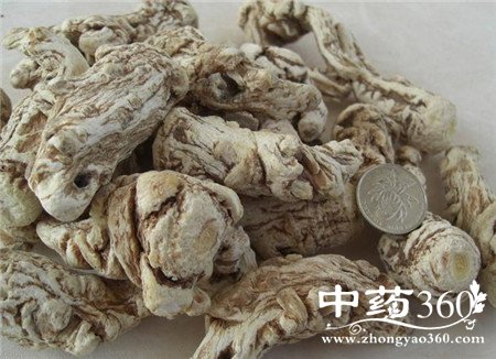 川芎性状鉴别:根茎为不规则结节状拳形团块,直径1.5-7cm。表面黄褐色至黄棕色,粗糙皱缩,有多数平行隆起的轮节;顶端有类圆形凹窝状茎痕,下侧及轮节上有多数细小的瘤状根痕。质坚实,不易折断,断面黄白色或灰黄,具波状环纹形成层,全体散有黄棕色油点。香气浓郁而特残,味苦,辛,微回甜,有麻舌感。以个大饱满、质坚实、断面色黄白、油性大、香气浓者为佳。