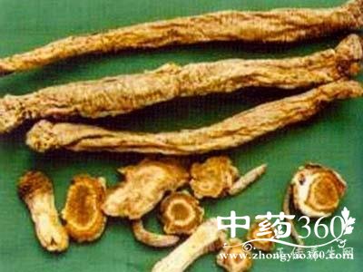 与人参类似,但分枝较少,仅根上端1~3cm部分有环纹,质稍软,断面裂隙少。味微酸。呈长圆柱形,稍弯曲,长10-35cm,直径0.4-2cm。根头部有多数疣状突起的茎痕的顶端呈凹下的圆点状;根头下有致密的环状横纹,向下渐稀疏,有的达全长的一半,栽培品环纹少或无;全体有纵皱纹及散在的横长皮孔,支根断落处常有黑褐色胶状物。质稍硬或略带韧性,断面稍平坦,有裂隙或放射状纹理,皮部淡黄白色至淡棕色,木部淡黄色。有特殊香气,味微甜。