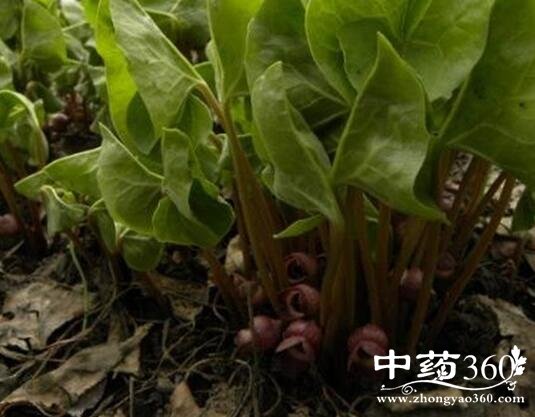 【原形态】多年生草本,高10~30cm。根茎横生,直径约3mm,顶端分枝,节间长2~3mm,节上生有多数细长的根,根粗约1mm,捻之辛香。叶通常2,心形或肾状心形长4~9cm,宽5~13cm,脉上有短毛,下面被较密的毛;叶柄长约15cm。花单生于叶腋;花被筒壶状,紫色,顶端3裂,裂片向外反卷;雄蕊12,花丝与花药近等长;子房半下位,花柱6。蒴果肉质,半球形。花期5月,果期6月。