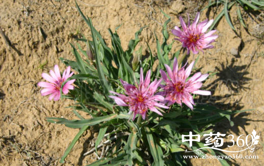 【原形态】蒜叶婆罗门参 一年工二年生草本,高60-120cm。根圆柱状,粗厚。茎粗壮不分枝或分枝,无毛或被柔毛。叶扁平,条状披针形,基部宽大,半抱茎。头状花序大,单生茎顶,长5-8cm;梗在头状药序下明显膨大,空心;总苞片1层,8个,少有5个;花全部舌状,红色或红紫色,先端5齿裂。瘦果直,褐色工黄褐色,边花瘦果有鳞片状疣状突起;果喙直伸,光滑,与果身等长,先端不扩大增粗;冠毛一层;污黄色;基部有一圈白色蛛丝状柔毛。
