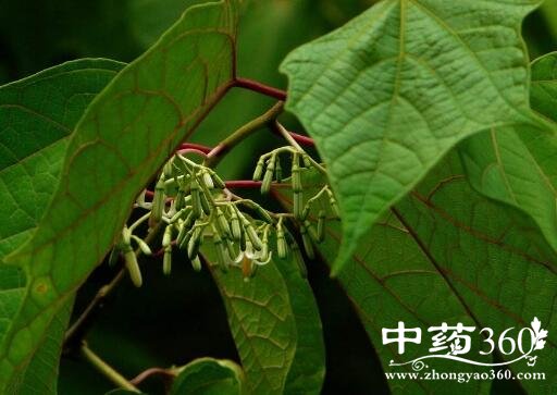 【植物形态】落叶灌木或乔木;树皮淡灰色,平滑;枝条水平状展开。单叶互生,圆形、卵形或椭圆形,顶端渐尖,基部两侧不对称,阔楔形、截形、稀近心形,全缘或有2~3裂,裂片大小不一,背面脉分叉处常有丛毛,主脉4~6,叶柄红色。二歧聚伞花序腋生,具小花8~30朵,花白色,后变乳黄色,花丝基部及花柱疏生粗短毛。核果卵圆形,熟时黑色。花期6~7月,果期9~10月。
