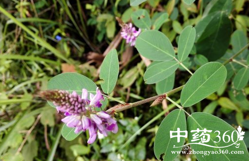 【原形态】多年生亚灌木状草本。茎柔弱,成丛,卧地或扩展,被毛,长30~60厘米。3出复叶;具小托叶;小叶近革质;倒卵形或倒卵状矩圆形,长1~3厘米,侧生小叶常较小或有时缺,先端钝,两面均被紧贴的柔毛。总状花序顶生或腋生,疏离;小苞片卵形,膜质,锥尖,被毛及有线条;花柄被毛,长为萼的2~3倍;萼长约2毫米,钟形,5深裂,上面2裂齿合生为一;花冠淡紫色,长约4毫米,旗瓣圆形,翼瓣与龙骨瓣连着;雄蕊2体;子房无柄,花柱内曲,柱头头状。荚果矩圆形,膨胀,长6~10毫米,稍被毛,有很细的横脉纹,成熟后变为黑色。种子6~8颗,肾形。花期8月。