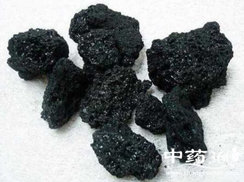 【性状】本品呈不规则块状,乌黑光亮,有多数细孔。体轻,质脆。用火烧之有焦发气,味苦。