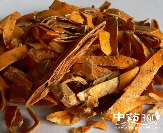 干燥果皮通常卷成筒状,长约6~10厘米;常连有果柄,长约2厘米;果皮很薄,外表面橙黄色,有鲜红斑块及细脉纹,内表面类白色至暗黄色,常附有未去尽的果肉。质硬而脆。芳香,带辣味。以颜色鲜泽、无果柄者为佳。