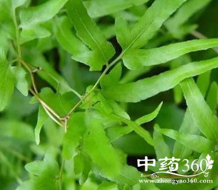 【原形态】多年生攀援质藤木,植株长5-6m。叶二型,厚纸质,羽片多数,对生,于叶轴的短枝上相距约25cm,短枝顶端着生一丛红棕色短柔毛;营养羽片生于叶轴下部,叶柄长4-4.5cm,柄先端具狭边,羽片掌状深裂,裂片6,披针形,长17-22cm,宽1.8-2.5cm,基部截形或阔楔形,全缘,有软骨质狭边,干后常向下面反卷。孢子羽片生于叶轴的上部,二叉掌状深裂至近基部,裂片与营养裂片同形,长20-30cm,宽2-2.5cm;叶脉分离,二叉状分枝直达叶缘。孢子囊穗褐色或绿褐色,线形,长2-5mm,紧密排列,有孢子囊5-6对;孢子淡黄色,四面型。