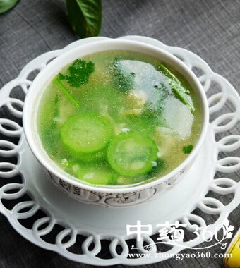 用丝瓜滚蛋花火腿肉汤,既方便又能消暑生津,清热润肤,且鲜美可口,实为时下上班一族的有益汤饮,亦为暑热时家庭佐餐靓汤。