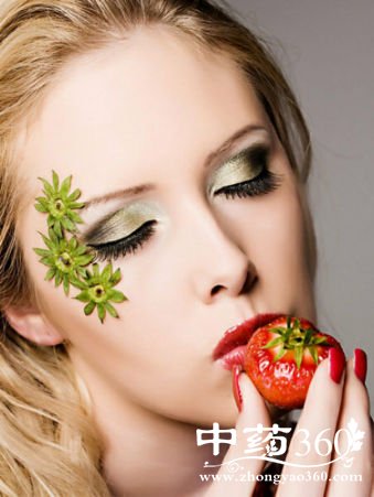 草莓属浆果,含糖量高达6%-10%,并含多种果酸、维他命及矿物质等,可增强皮肤弹性,具有美白和滋润保湿的功效。另外,草莓比较适合于油性皮肤,具有去油、洁肤的作用,将草莓挤汁可作为美容品敷面。现在的很多清洁和营养面膜中也加入了草莓的成分,例如稀有的莓多酚因子,对祛痘还有很好的功效。