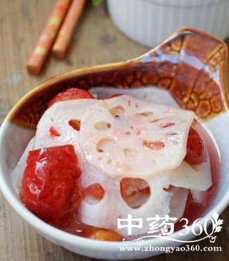 原料:莲藕1截、山楂50克、冰糖50克、食盐1克。