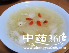 百合30克,莲米15克,银耳10克,冰糖适量。将莲米、银耳发开,与百合、冰糖同放锅中,加清水适量煮至汤浓即成,每日1剂。功效:可润燥养阴。