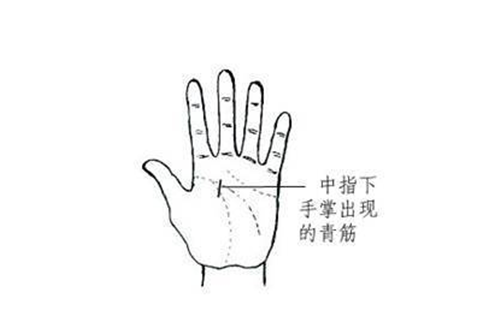8,中指根部有青筋,代表脑动脉硬化。