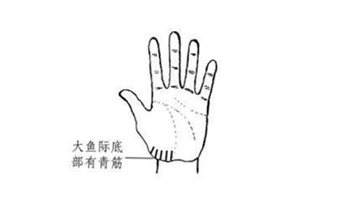 4,大鱼际外侧有青筋,代表心率不齐,心脏跳得快慢不一,有时会有早搏、心悸、心慌的现象